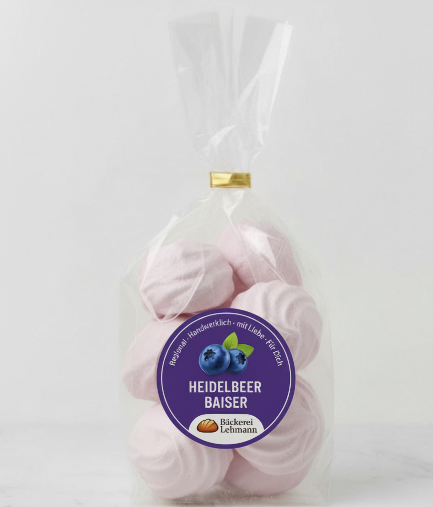 Eine zarte Verführung, die auf der Zunge zergeht. Dieses süße Gebäck kombiniert den frischen Geschmack von Heidelbeeren mit der Leichtigkeit von Baiser zu einem unwiderstehlichen Genuss.